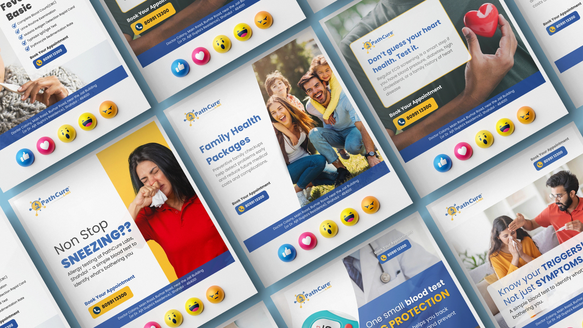Social Media Kit for a Patology Lab in Shahdol, India.